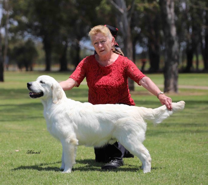 Gamble’s first day in the show ring saw him win 2nd place in baby puppy sweepstakes in a class of 22 lovely youngsters. Then at the 11th National Golden Retriever Championship show, he won his class plus baby puppy sweepstakes and finished with Opposite Baby Puppy in Show!! Gamble gained his Australian championship title at 17 months of age and won his first specialty Best in Show while a 2 year old.