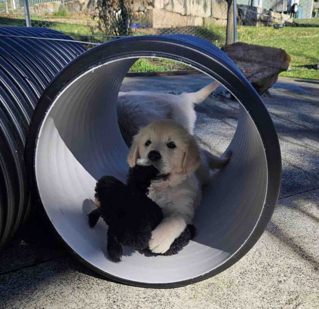 Bubs in the puppy house